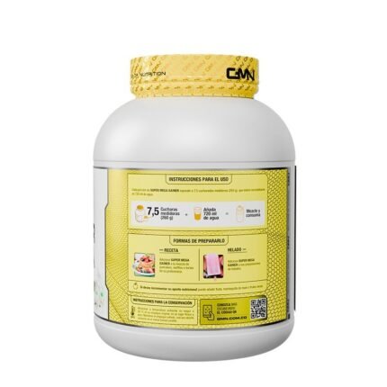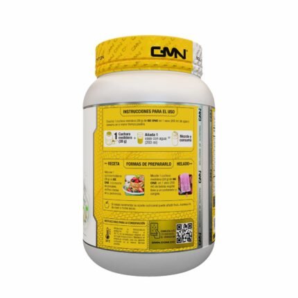 Mezcla en polvo a base de proteína aislada de suero de leche para preparar bebida, sin colorantes adicionados, sin azúcar añadido y sin conservantes con avena molida, almidón de maíz ceroso (amilopectina), palatinosa, harina de arroz, harina de quinua y MCT (Triglicéridos de cadena media), con sabor artificial a Vainilla gourmet.